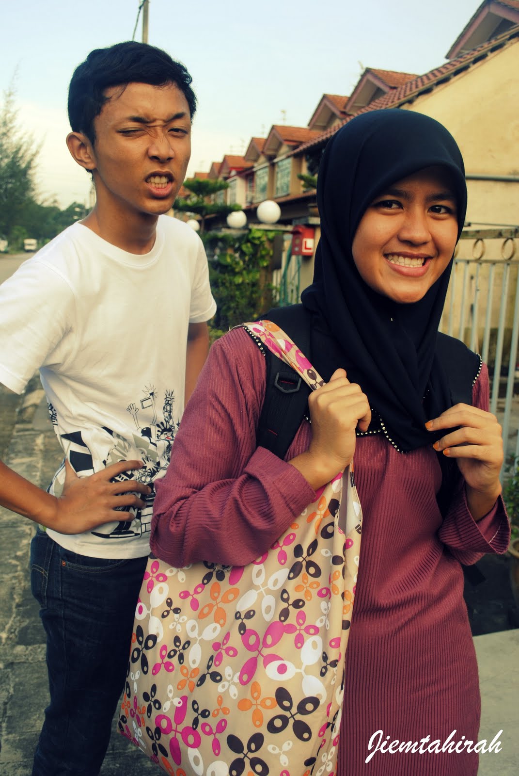 Assalamualaikummm :) based on the picture, sila tengok budak disebelah kanan awak bukan kiri awak. kiri itu si tembam (saya). peaceeeee :) ape? saya sudah tembam? you see azim, nih awak punya pasal tau. hakha :D tipu jee. Mohamad Norazim saya tak tahu pape punnn. jangan ape ape kan dier. haha :D ala, tembam sikit jee tuhh. 'relax sudah' bak kata azim saya :) okay dah dah, sambung tadi, ha yang pakai tudung putih tuhhh, ha betul! itu adik saya. dier baru 13 tahun okayyy. dier memang nakal and manja pun dier, semua dier. hakhak :D kadang kadang tak kuasa i nak melayan. hehe :)